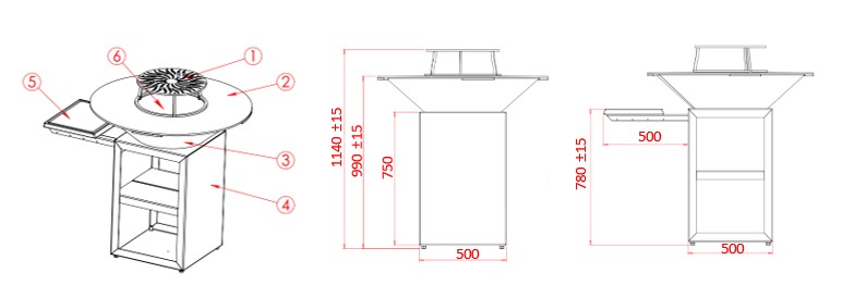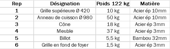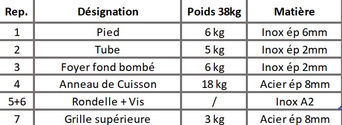 Ci-dessous les dimensions du Brasero.
