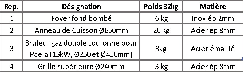 Ci-dessous les dimensions du Brasero